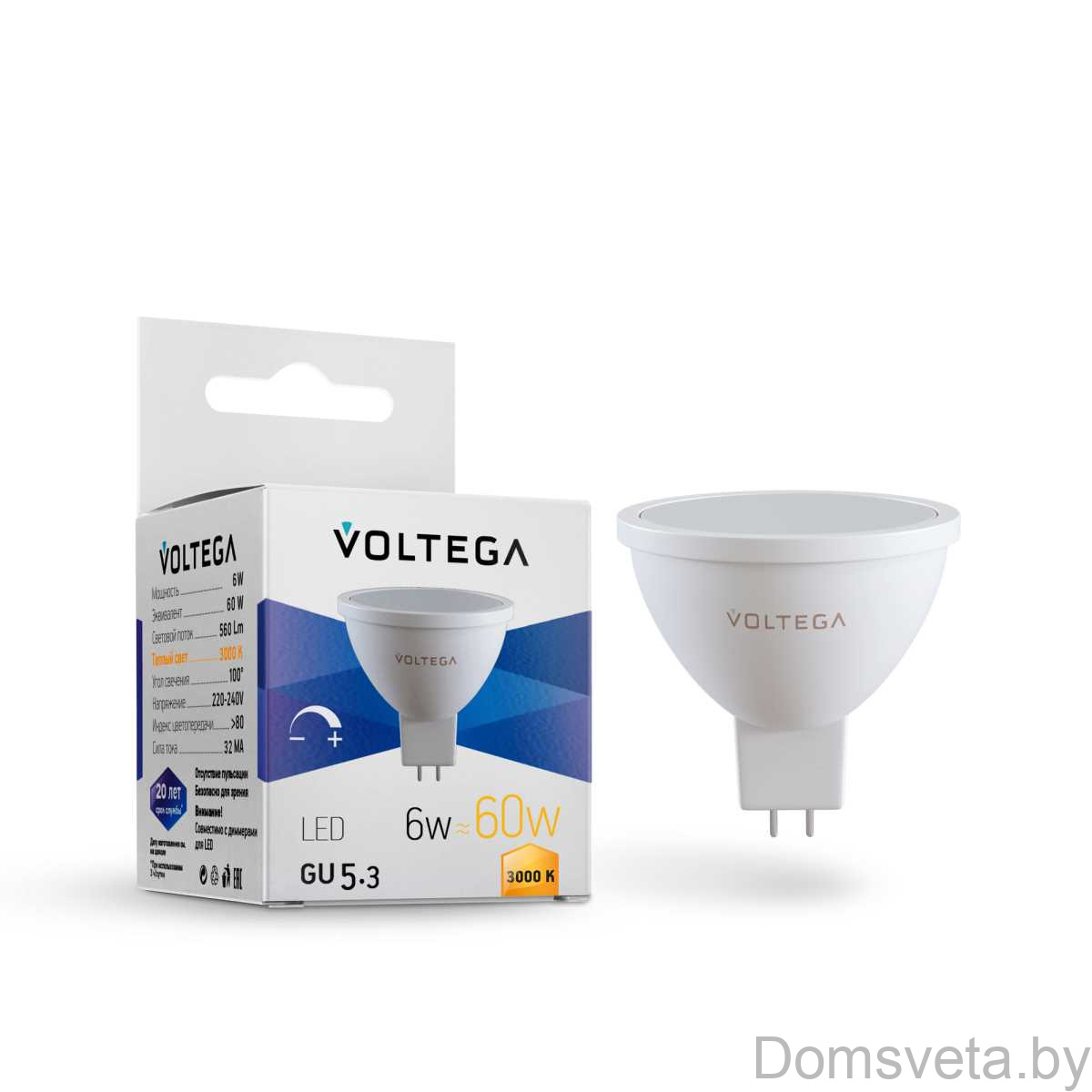 Набор светодиодных ламп Voltega GU10 7W 2800К прозрачная 7176
