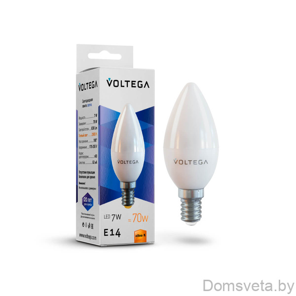 Лампа светодиодная Voltega E14 7W 3000K матовая 7242