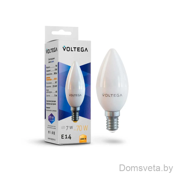 Лампа светодиодная Voltega E14 7W 2800К матовая VG2-C37E14warm7W 7048