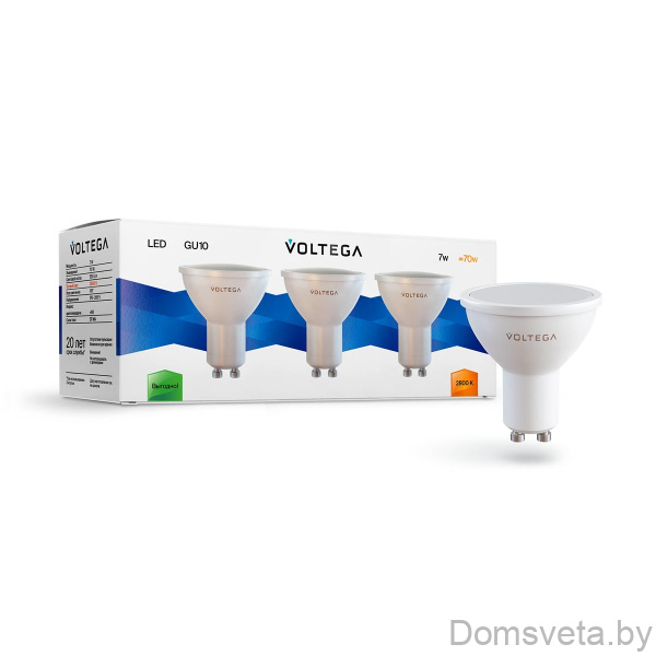 Лампа светодиодная Voltega GU10 7W 2700K прозрачная 7252