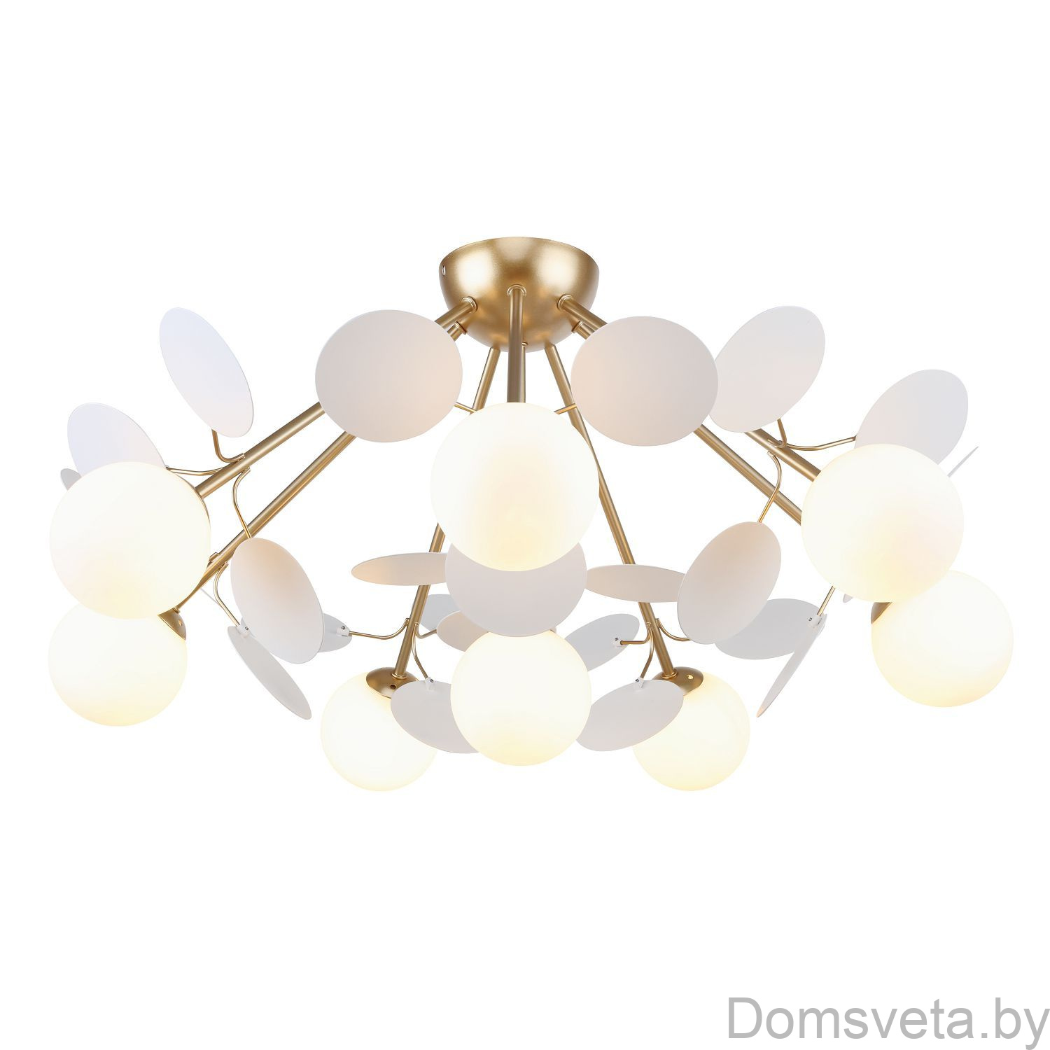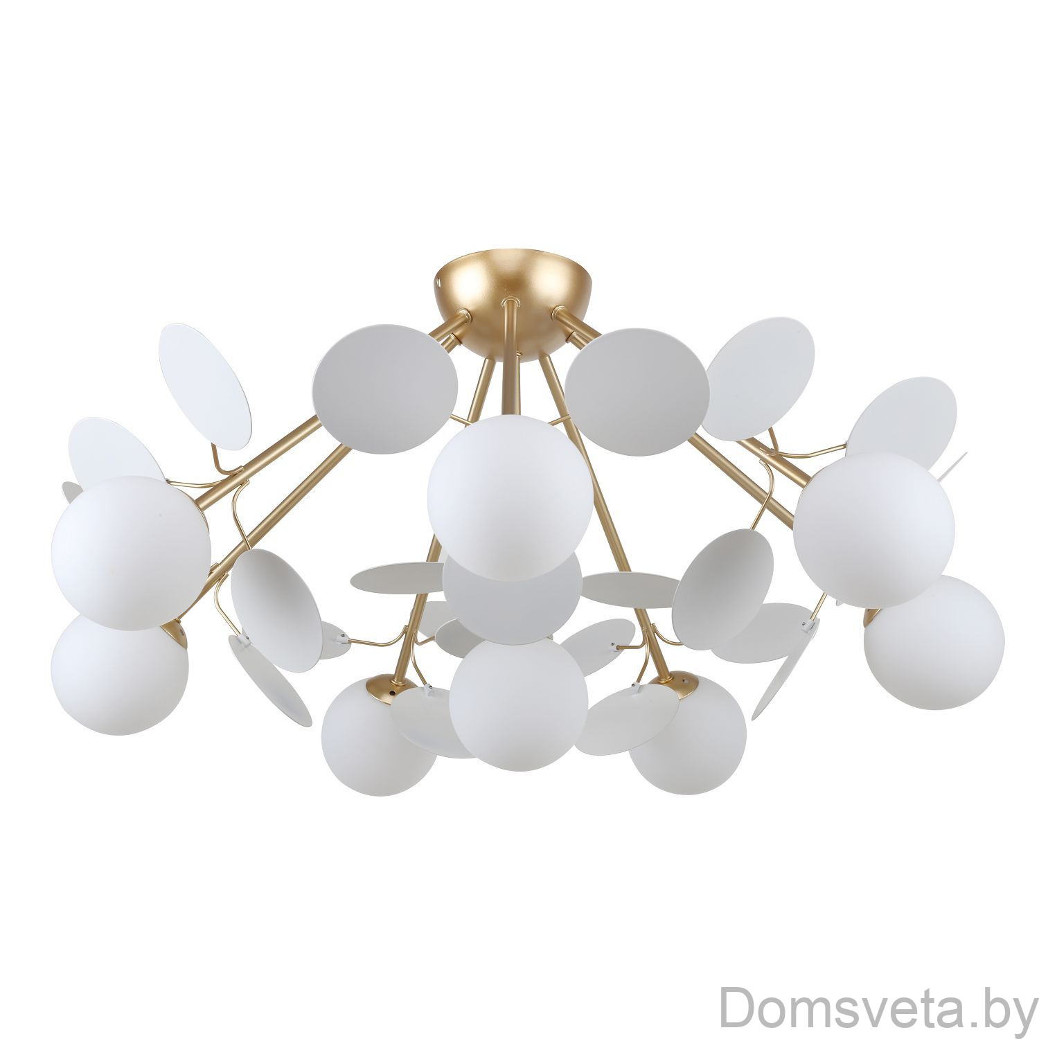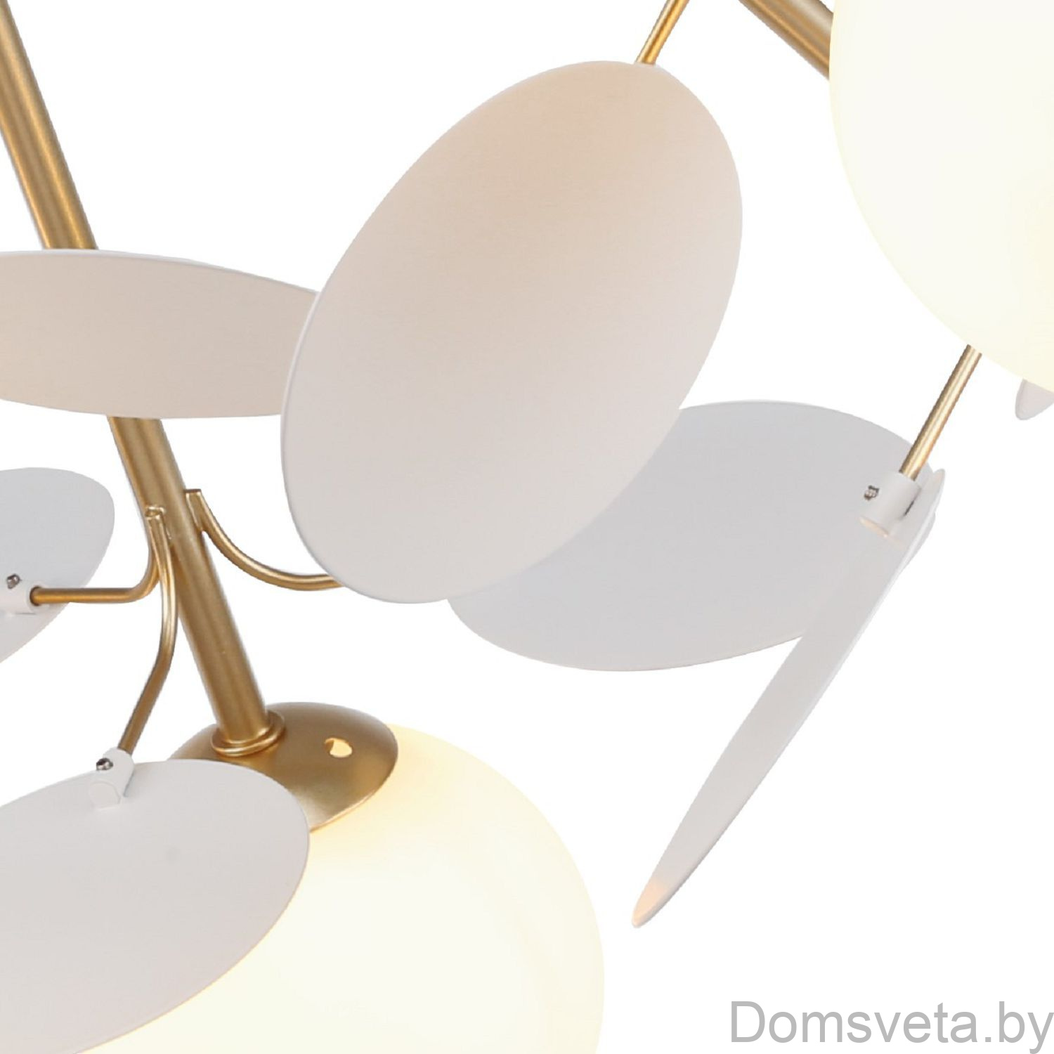 | Дополнительно | Каркас золотого цвета, круглые стеклянные плафоны молочного цвета, декоративные круглые белые пластины | |