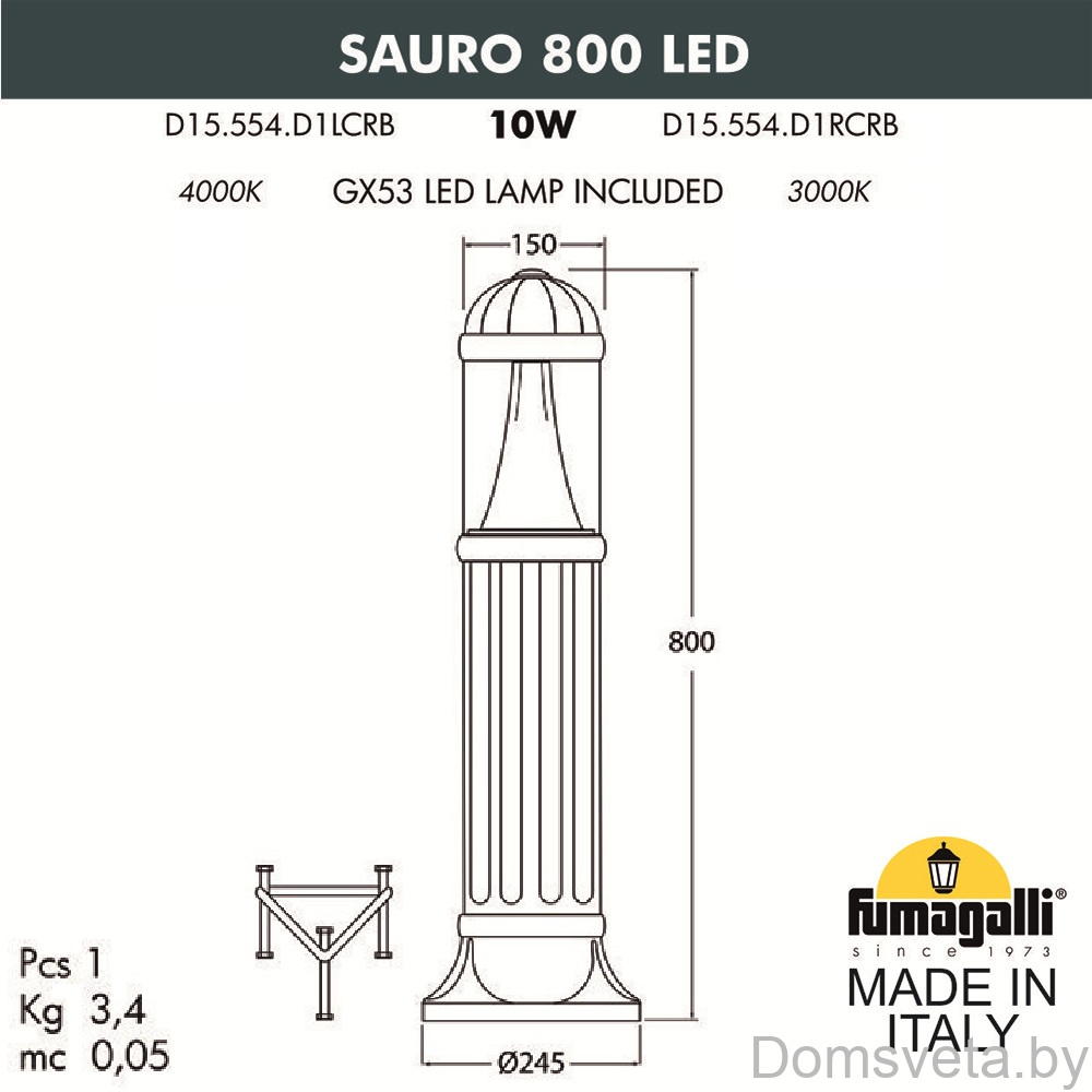 | Комплектация | С коническим led рассеивателем (crb) и спец. уличной светодиодной лампой "fumagalli" яркостью 1200 lm | |