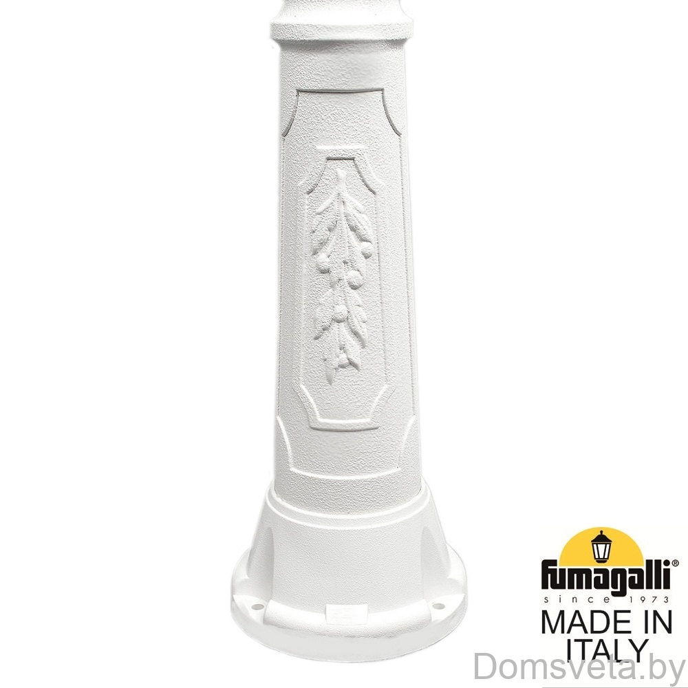 Садово-парковый фонарь FUMAGALLI среднего размера серии NOEMI, модель RICU/NOEMI. Парковый фонарь с 1 венчающим светильником большого размера в на классическом столбе RICU высотой 2,0 м (+высота фонаря). Предназначен для освещения парковых дорожек, cкверов, садовых и ландшафтных композиций, и других общественных пространств. Используется в качестве основного уличного освещения на городских улицах и площадях. Изготовлены в Италии, по уникальным технологиям "FUMATECH" из современного композитного полимера RESIN. Этот материал в 5 раз прочнее металла, не ржавеет, не окисляется, не выгорает на солнце, его не нужно красить. Все светильники пыле-влаго защищены по стандарту IP55 (Пылезащищенные, защита от водяных струй с любого направления). Рассеиватель выполнен из антивандального, не мутнеющего и не горючего PMMA (ПолиМетилМетаАкрилат). Срок службы светильника - не менее 20 лет. Температура использования от -60 до +90. В серии NOEMI есть садовые фонари в настенном (OFIR/NOEMI, MIRRA/NOEMI) подвесном (SICHEM/NOEMI) и наземном исполнении (IAFAET.R/NOEMI, ALOE.R/NOEMI, ARTU/NOEMI, GIGI/NOEMI, RICU/NOEMI, NEBO/OFIR/NOEMI 1L, NEBO/OFIR/ANNA 2L, TABOR/ADAM/NOEMI 3L) со столбами разной высоты, с разным количеством и конфигурацией голов. Консоли настенных фонарей и кронштейны светильников на столбах освещения могут устанавливаться в положение вверх и вниз. Столбы выше 150 см имеют в основе мощную стальную трубу с двойной оцинковкой. При заказе требуется выбрать цвет корпуса, цвет плафона и тип патрона (Е-27 или LED GX-53). Возможен светодиодный вариант. По стилю и дизайну серия уличных светильников NOEMI похожа на светильники среднего размера серии RUT и на светильники малого размера серии ANNA. По размеру относится к большим парковым светильникам как серия SIMON и GLOBE 400.